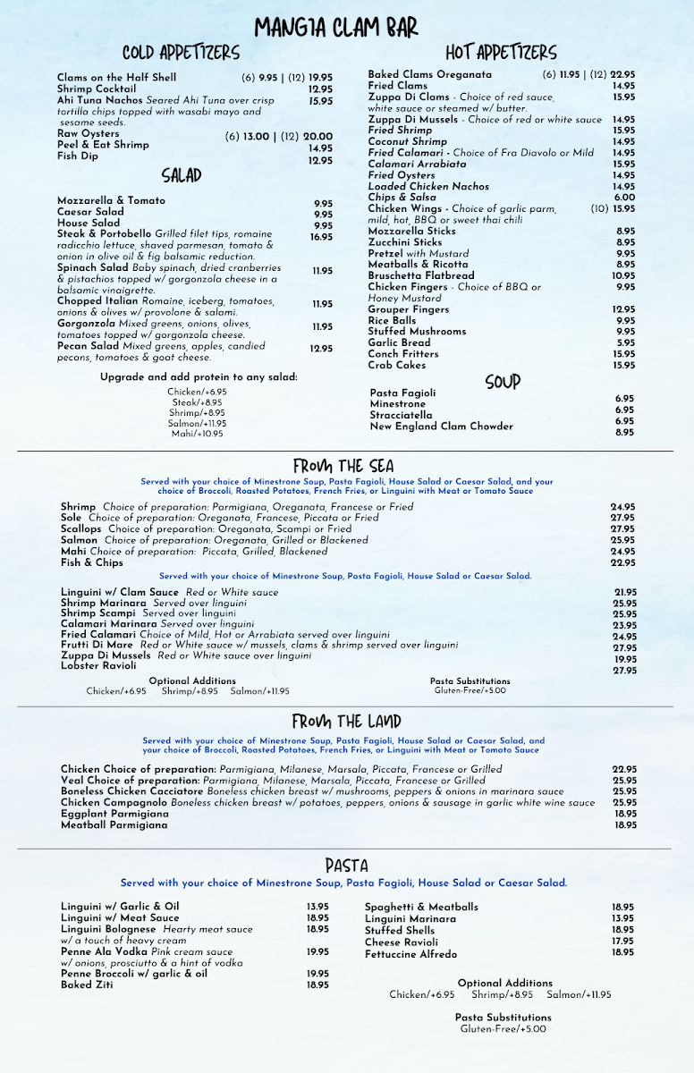 Welcome to Mangia Clam Bar, the vibrant coastal eatery located in Stuart, Florida. Known for its enticing menu, Mangia serves up a delightful array of culinary treasures that celebrate the flavors of the sea and classic comfort food.